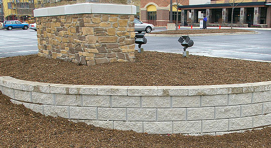 The Pinnacle retaining wall unit is the state of the art in segmental retaining wall technology. With its one square foot face area and light weight, walls are easy to design and install. Pinnacle will meet your needs, from small landscape to large structural retaining wall applications. The Pinnacle system provides outstanding aesthetics with its classic lines and rugged stone texture. Whether your building a small gravity wall or a massive geogrid reinforced retaining wall, Pinnacle is your solution for an attractive, durable, cost effective grade separation product. Installation with the Pinnacle system is extremely efficient and easy. The Pinnacle Systems innovative PAC alignment clip provides an automatic wall setback, while allowing inside and outside curves to be easily constructed.